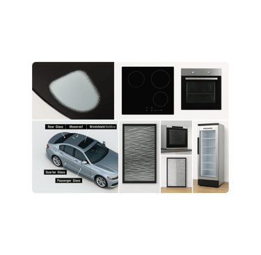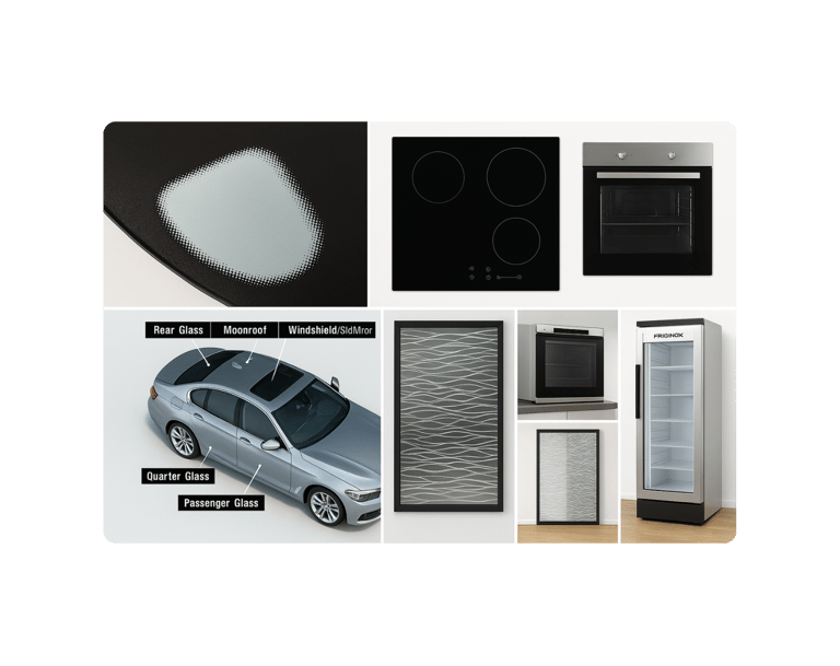 Automotive: Glass is colored to match the car body, creating striking visual effects—one of the largest sectors in glass printing.